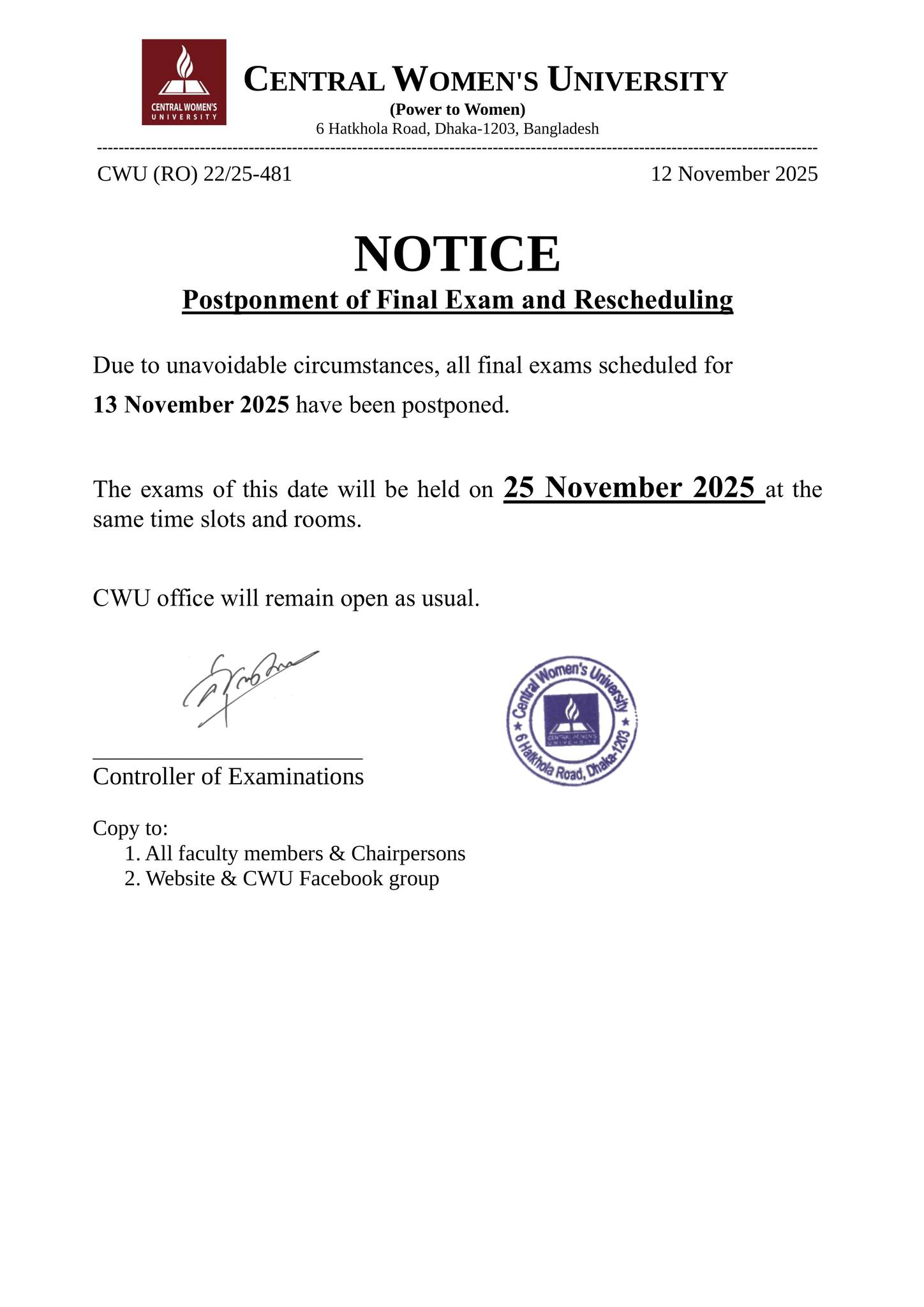 Postponement of Final Exam and Rescheduling