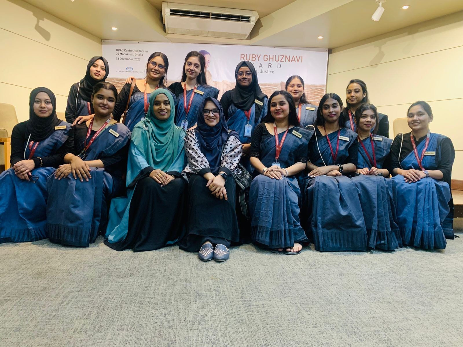 Today, our students had the honour of participating in the prestigious “Ruby Ghuznavi Award for Social Justice 2024”, organized by the A. F. Mujibur Rahman Foundation. The award ceremony was held this morning at the BRAC Centre Inn Auditorium, BRAC Centre (2nd Floor), Mohakhali, Dhaka, and celebrated the remarkable contributions of Moanoghar, one of the largest charities dedicated to the education and wellbeing of under-privileged children in the Chittagong Hill Tracts. We are delighted to share that 12 dedicated volunteers from Central Women’s University actively took part in the program. Throughout the ceremony, our volunteers demonstrated exceptional professionalism, discipline, and a strong sense of responsibility representing CWU with pride. By witnessing such an inspiring event-featuring keynote speeches, cultural performances, and the formal handover of the Ruby Ghuznavi Award, our volunteers gained meaningful exposure to real-life leadership, community development, and the spirit of social justice. We believe this experience will deeply enrich their understanding of service, empathy, and civic engagement. As a club committed to shaping socially conscious young women, we take immense pride in our volunteers for their commendable participation. May this experience continue to inspire them to contribute positively to society.