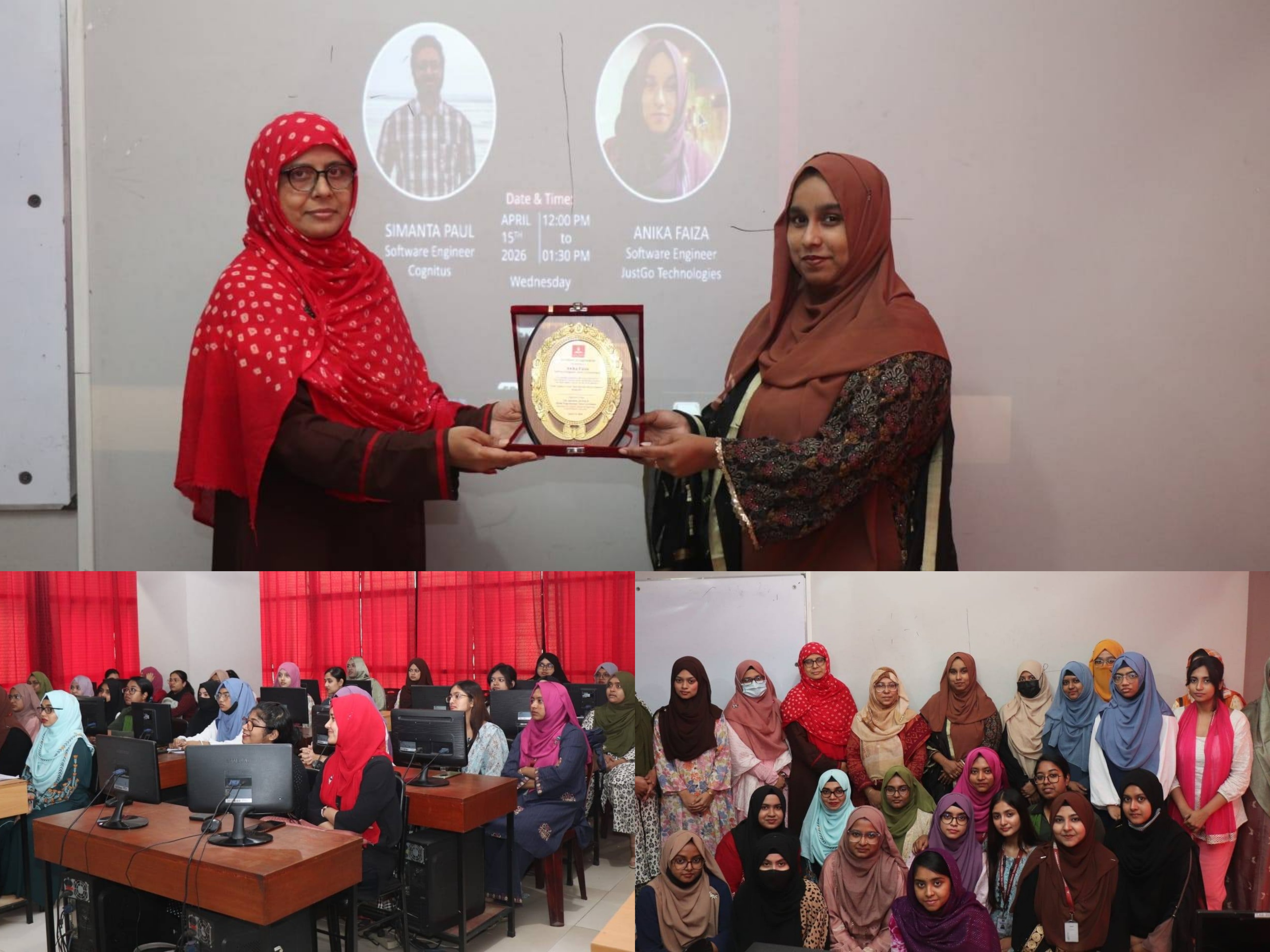 The Department of Computer Science & Engineering, Central Women’s University, organized a seminar titled From Campus to Career: Real Talk with Software Engineers on April 15, 2026 (Wednesday). The session was conducted by Simanta Paul (Software Engineer, Congnitus) and Anika Faiza (Software Engineer, JustGo Technologies), who shared practical insights on industry expectations, career preparation, and real-world software development. Organized under the Algorithm and Web & Mobile Programming course curriculum, the seminar was attended by CSE students and provided an interactive platform for learning and career guidance.