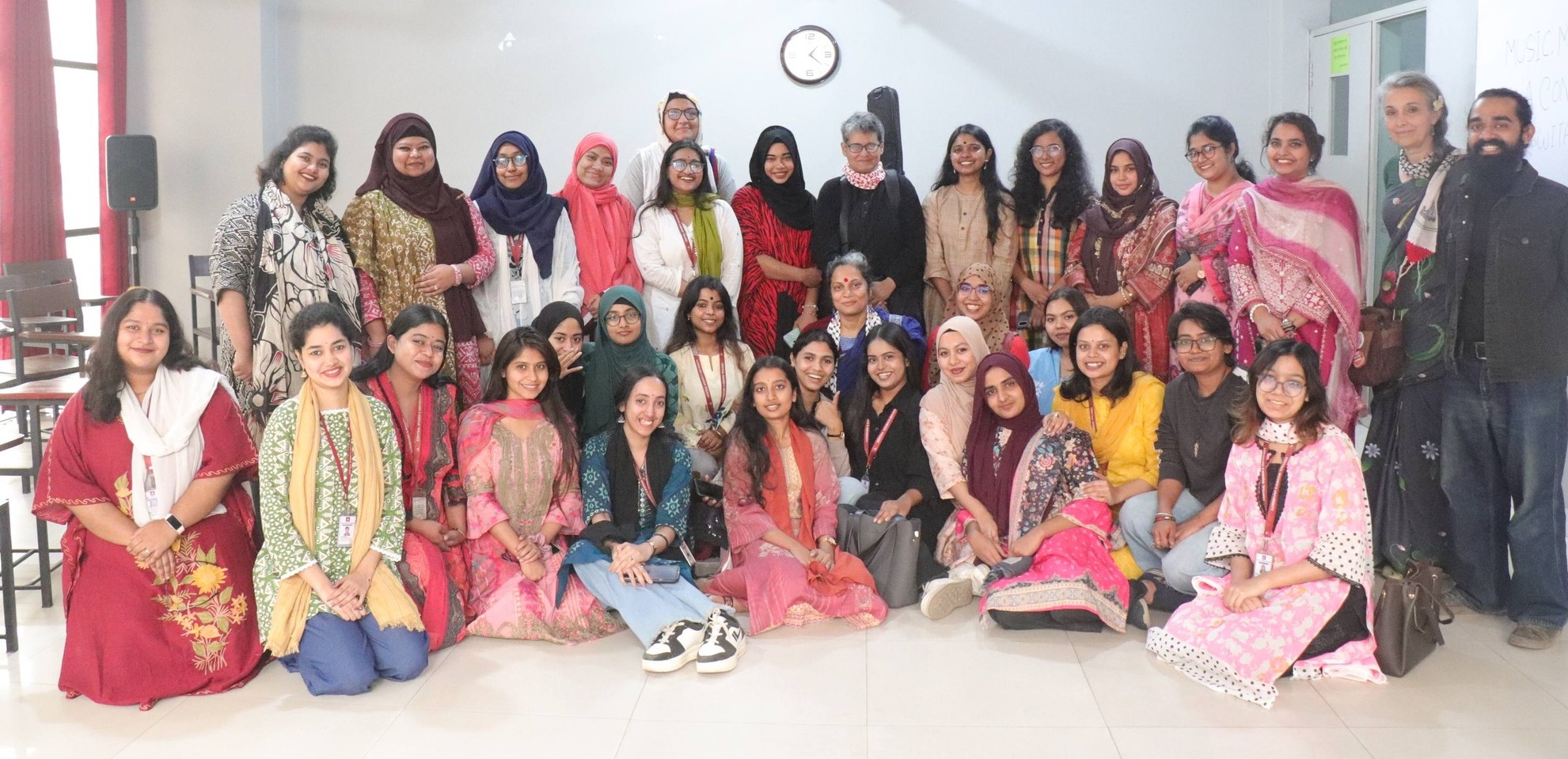 The Department of Journalism and Media Studies, Central Women’s University hosted a thought-provoking session titled “Music, Market and Freedom: A Conversation with Shayan.” The session created an open and engaging space where students actively shared their thoughts, questions, and experiences. Our students expressed their views with confidence, making the discussion lively and meaningful. The conversation explored the relationship between music, market forces, and freedom of expression, offering students new perspectives on creativity, resistance, and reality. We sincerely thank singer and activist Farzana Wahid Shayan for this enriching exchange and Drik Trust for their collaboration in making the session possible.
